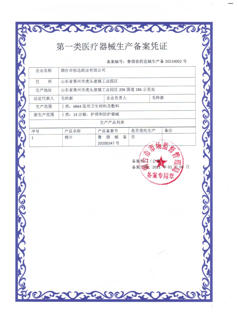 一类医疗器械备案-烟台市恒达纸业有限公司